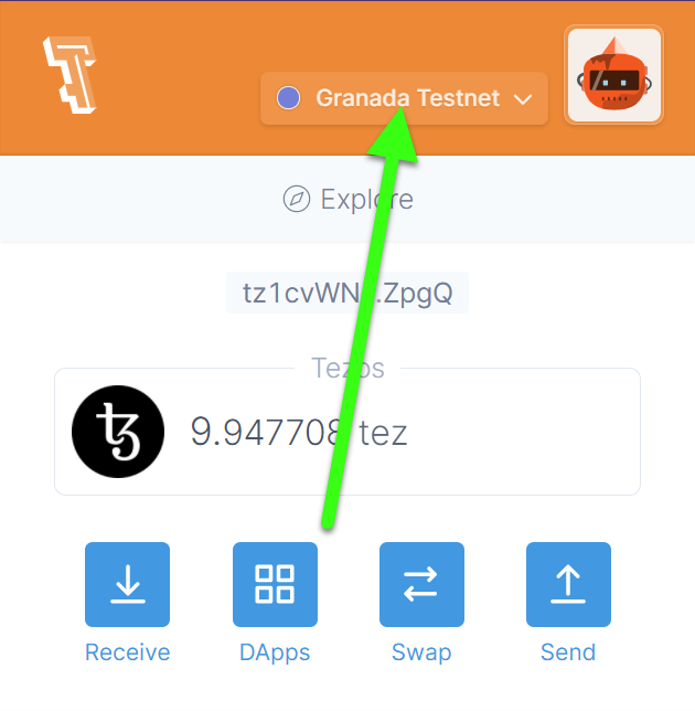 Switch your wallet to Granada Testnet.